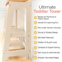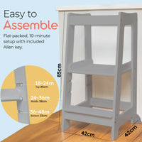 No more toddler grabbing at your ankles demanding to be lifted up! Inspired by the Montessori philosophy, the Stepup Baby Toddler Tower enables your child to fully participate in family life in a safe and fun way.